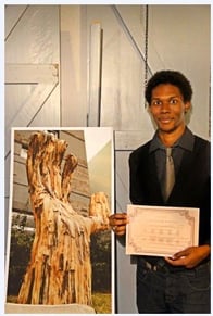 Winner : Arnaud MINATCHY has presented works as varied as contemporary like videos, photographs representing nature taking back his rights in the city then a monumental sculpture forming a hand in vacoa.